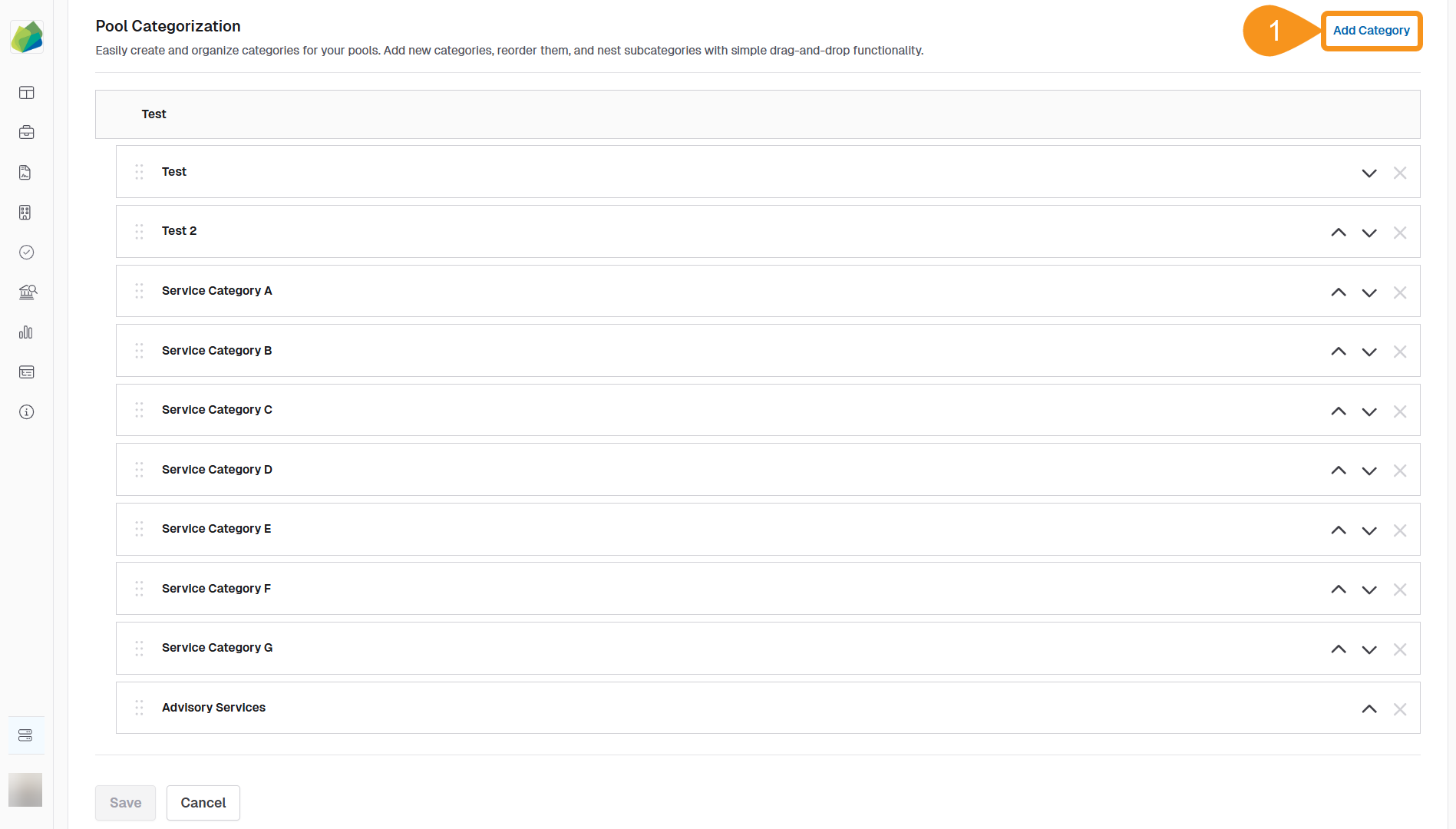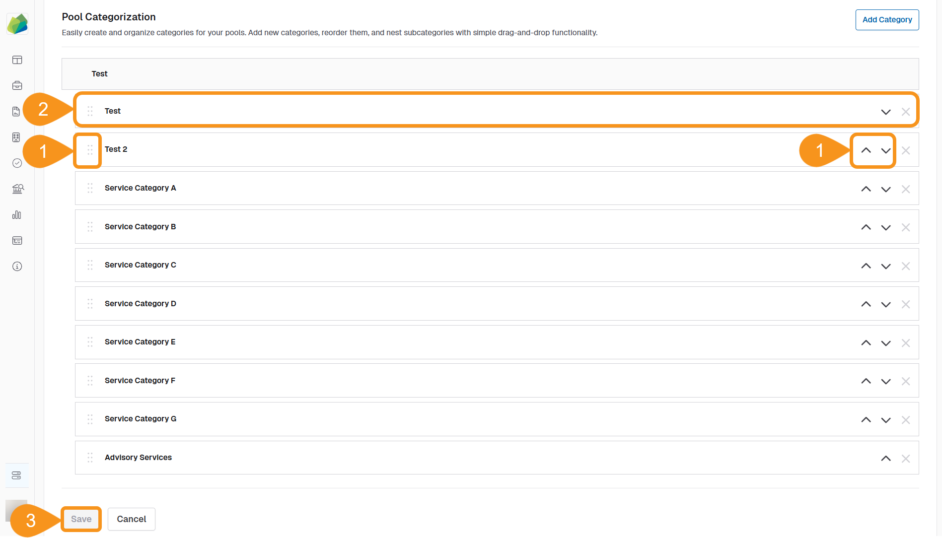 1. From the Edit Pool Info screen, use drag-and-drop or the arrow icons to reorder categories.