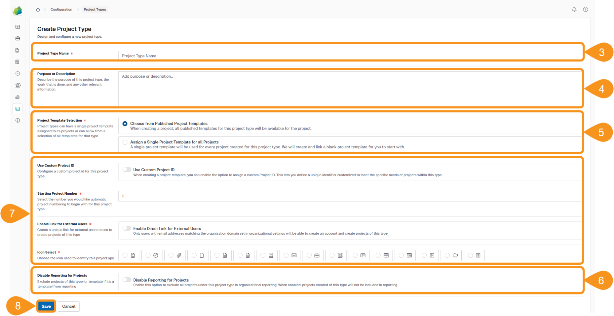 5. Configure any other settings as needed (e.g., custom ID, starting project number, icon).
