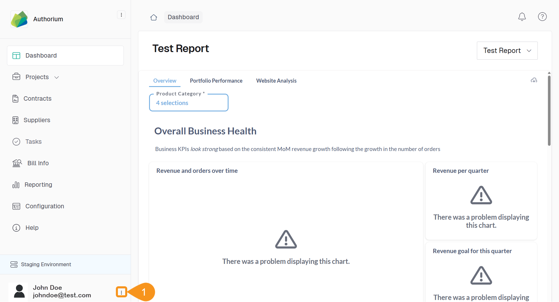 1. From the Dashboard, click the three-dots menu next to your name and email in the navigation bar.