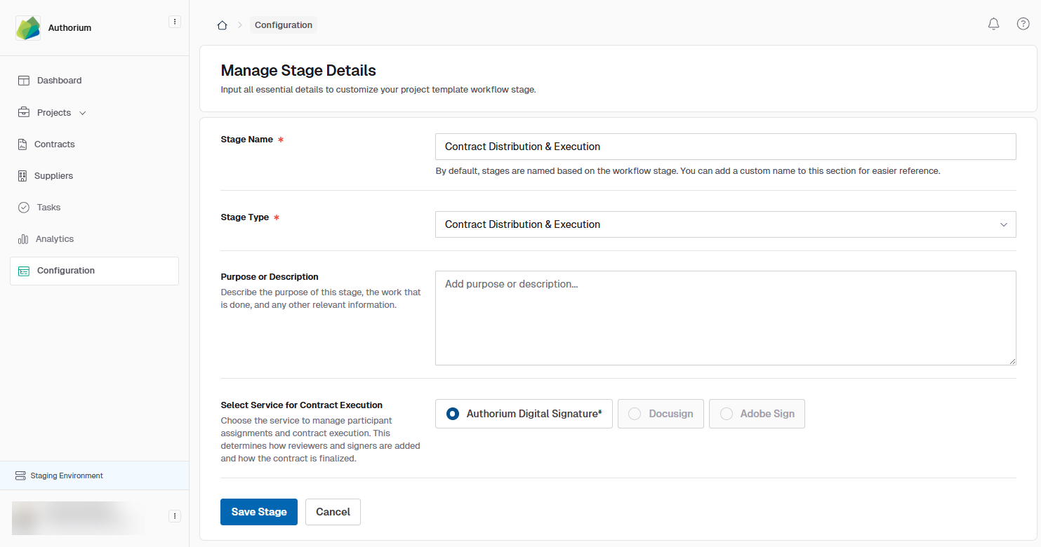 It allows users to create and access global variables across the Authorium platform. After a supplier is invited and inputs their information (name, primary contact, and email), this data automatically becomes a global variable. These variables can be applied to multiple projects, stages, CDMs, and signature workflows.